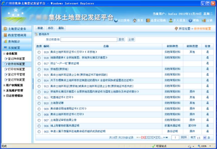 主要功能有圖形管理子平臺(數據應用管理、數據查詢統計、數據編輯、打印輸出),土地登記辦證子平臺(登記業務辦理、查詢、統計、輔助功能),登記檔案管理子平臺(檔案移交接收、檔案維護、檔案利用、檔案密級管理),系統配置管理(用戶管理、業務工作流程配置、系統配置、日志管理)。